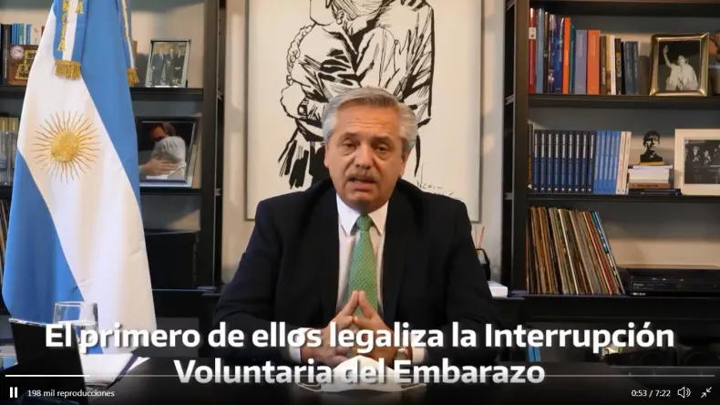 El presidente Alberto Fernández anunció esta tarde que enviará al Congreso dos proyectos de ley que incluyen la legalización de la interrupción voluntaria del embarazo (IVE) y el Programa de los Mil Días.