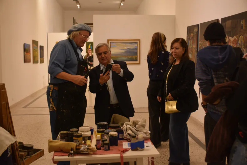 A la vez que el artista Julio Parada Seifert pintó en vivo en una de las salas del Museo de Bellas Artes, con sus tradicionales paisajes camperos.